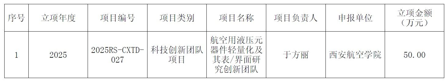 近日,陕西省科技厅2025年度科研项目立项结果正式公布,我校材料工程学院获批首个省级科技创新团队——“航空用液压元器件轻量化及其表/界面研究创新团队”,实现了历史突破,为落实学校“13810”工作思路和材料与化工专业硕士点申报提供了有力支撑。