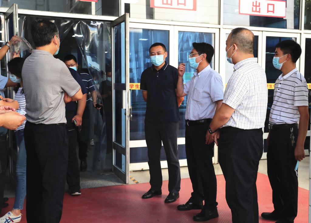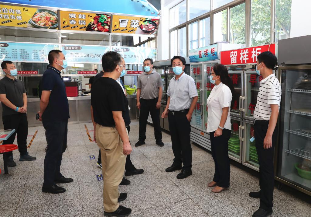 王建斌、曹庆年等先后到学生餐厅、公寓、隔离观察室、校医院、教学楼、实验楼等地,仔细检查开学准备情况,询问了解入校防疫检查工作流程、食品安全、公寓条件改善、防疫物资储备、应急处置预案等情况。
