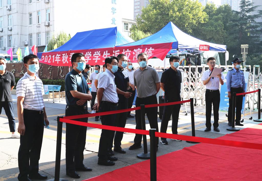 8月27日,学校党委书记王建斌、校长曹庆年分别带队对阎良、莲湖校区秋季开学准备及疫情防控工作进行检查。党委副书记刘谦、韩明军、曹渊,副校长宋文学、宁永录,党政办公室、教务处、学生工作部(处)、后勤保障处、保卫处以及纪检监察部门负责人陪同检查。