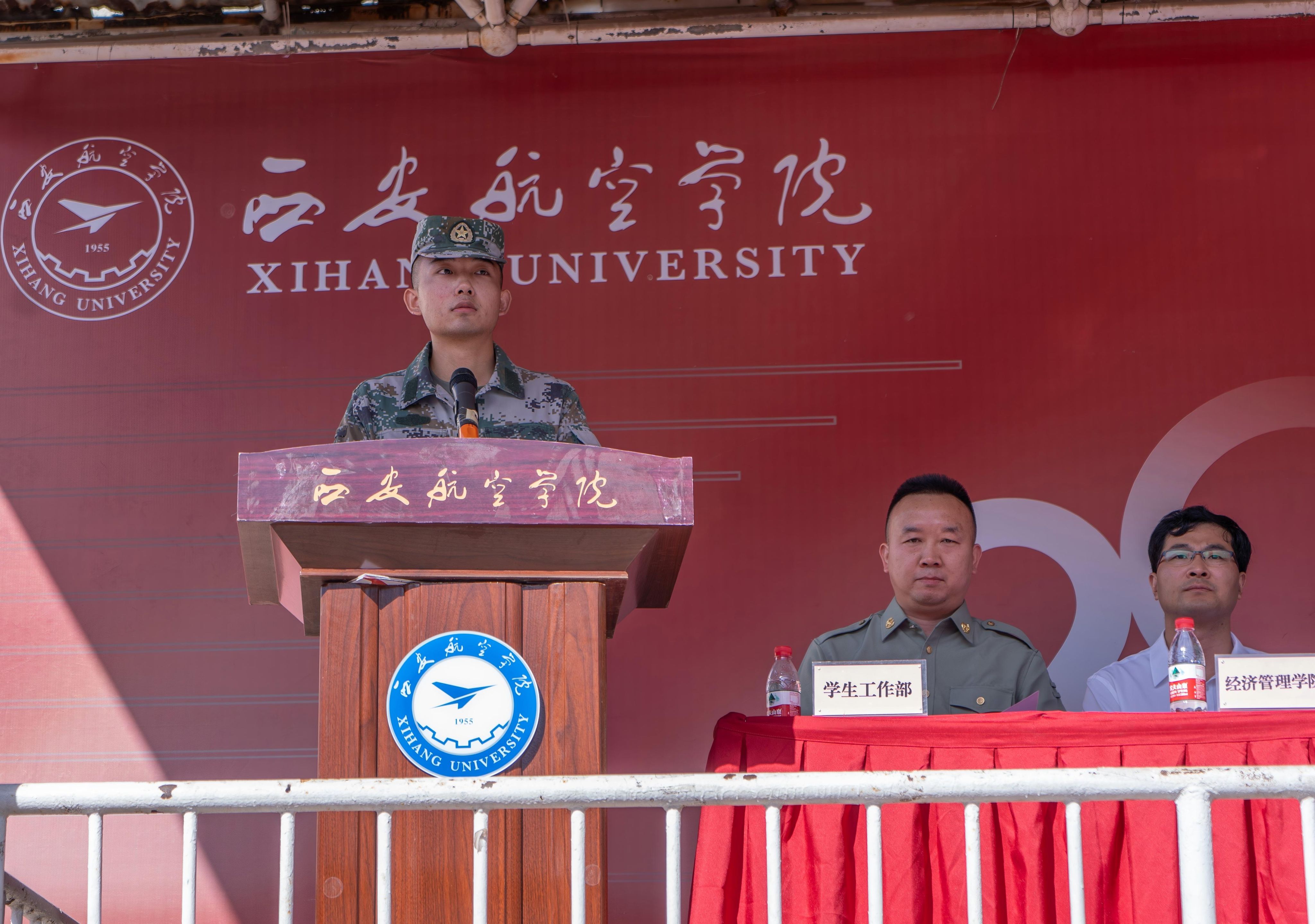 人文与外国语学院商英252班高靖泞、民航学院航服252班周欣晨代表2025级新生发言,承诺在军训期间严格要求、服从命令、听从指挥,努力完成训练任务,倡议同学们严守纪律、刻苦训练、积极应对挑战。