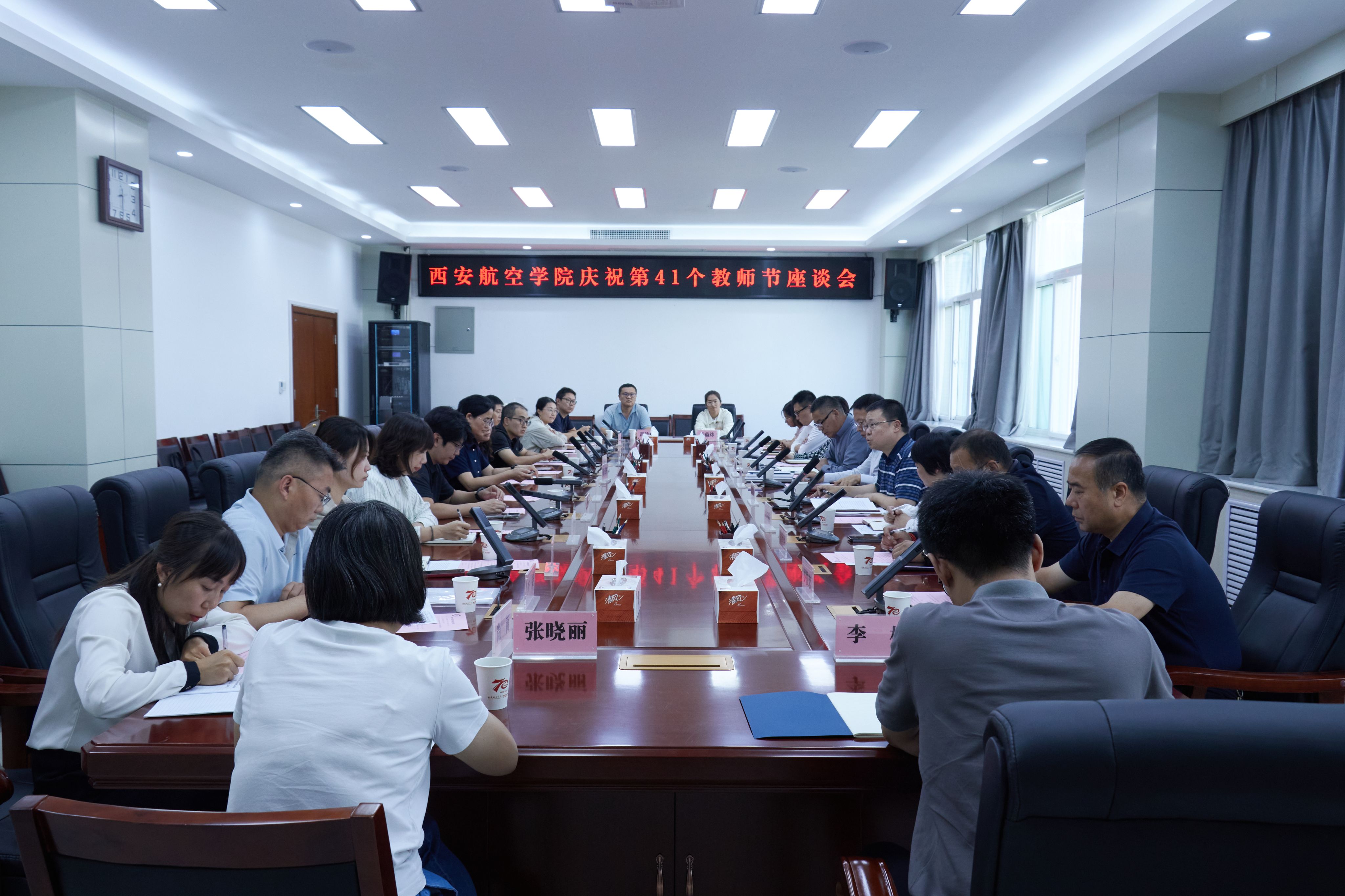 在第41个教师节来临之际,我校于2025年9月8日下午,在阎良校区第二会议室召开教师节座谈会。本次会议以 “以教育家精神铸魂强师,谱写教育强国建设华章”为主题,校长蒲永平、人事处(党委教师工作部)、教务处、科技处、学科建设办公室、学生工作处、后勤保障处、财务处等部门负责人及教师代表参加了会议,会议由人事处吴晓葵处长主持。