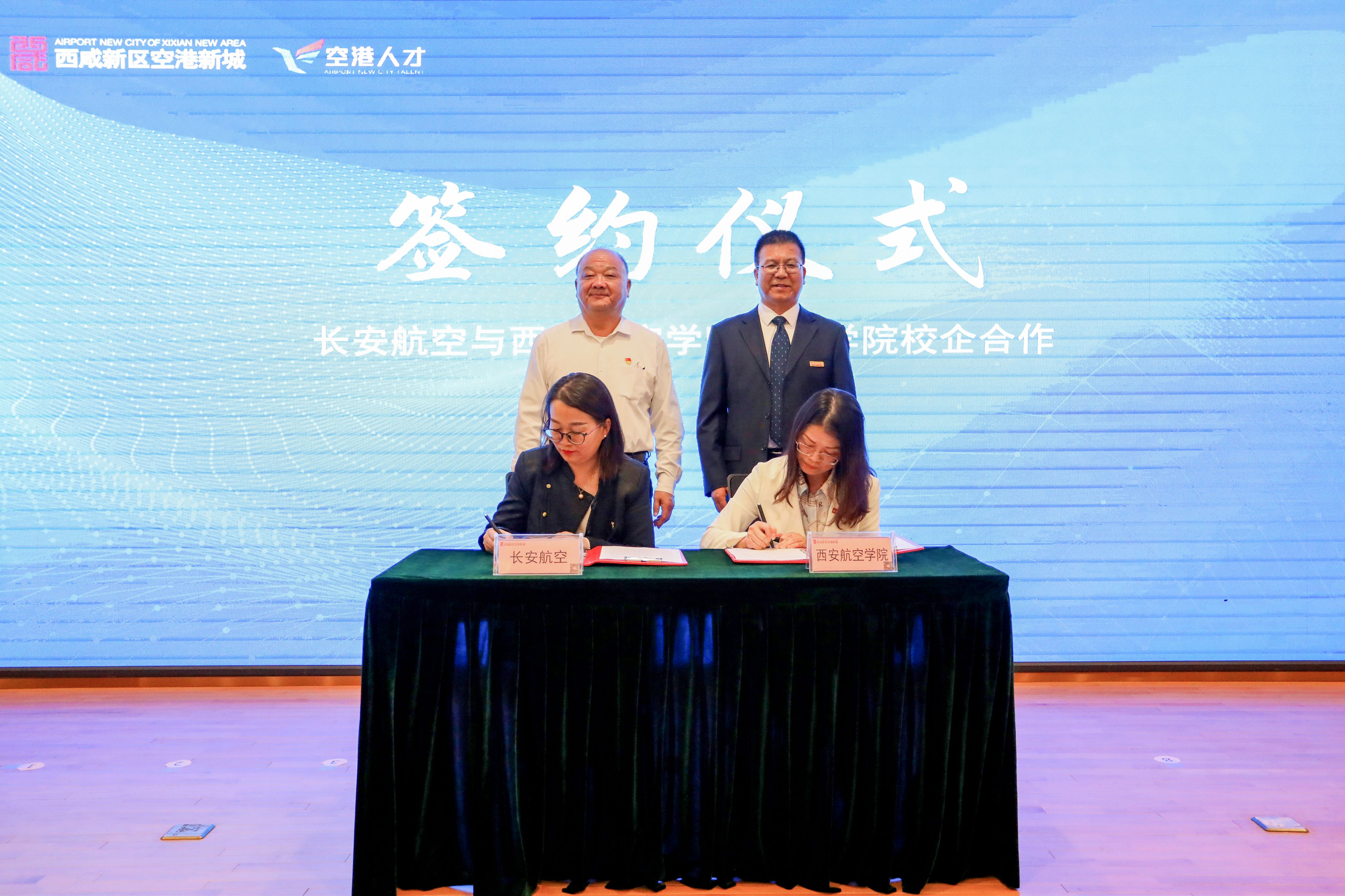 签约仪式上,空港新城与我校签订政校合作协议,双方将在人才培养、实习就业、科技转化等方面开展全方位、多层次的长期合作,不断深化政产学研融合。我校与长安航空有限责任公司签订校企合作协议,双方将在党建共建、人才培养、共建科研平台等方面建立合作关系,实现资源互换、优势互补、合作共赢。