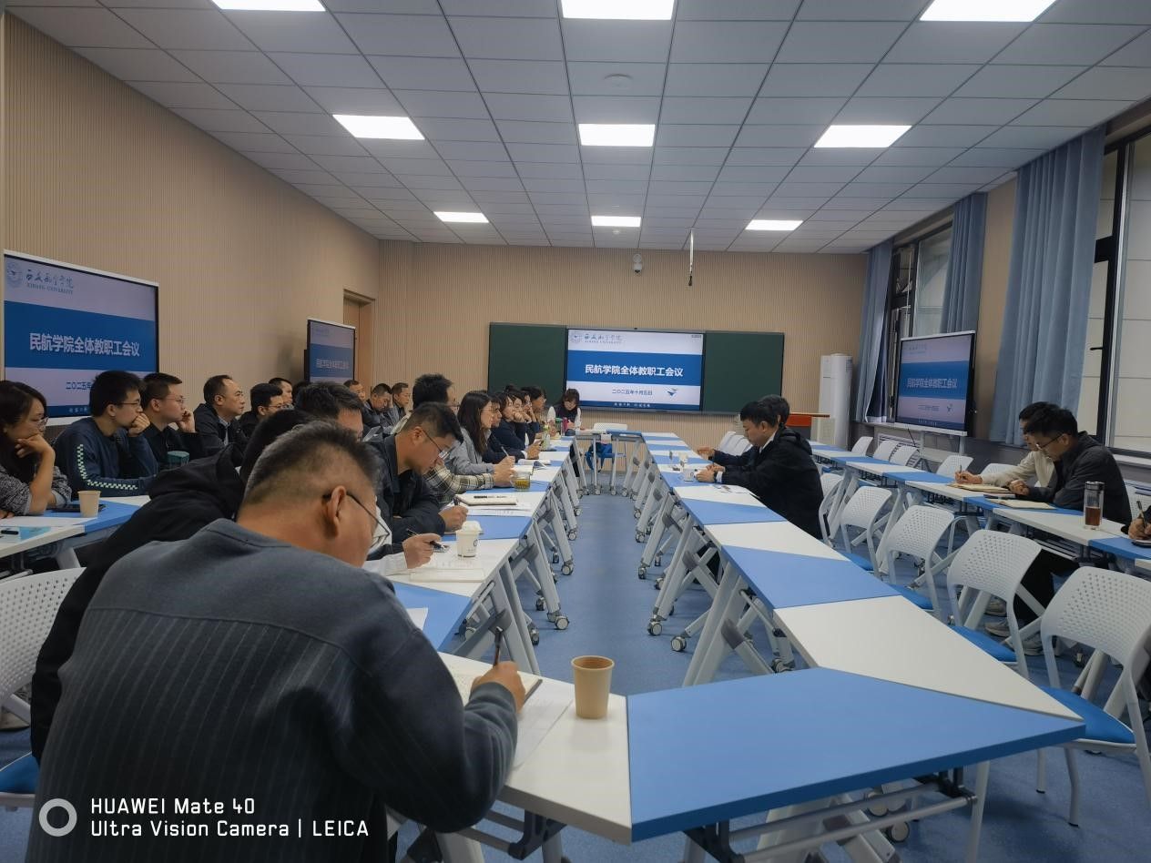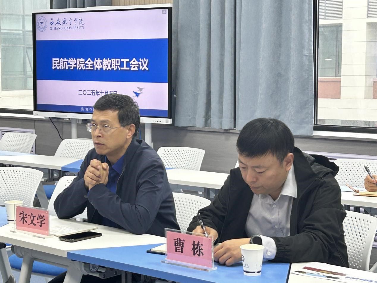 宋文学作重要讲话。他强调,审核评估是检验办学水平、推动教育教学高质量发展的关键契机,民航学院作为特色院系,必须高度重视,以高标准、严要求落实各项任务。他提出三点要求:一是严守资料规范性底线,全面核查、完善评估材料,杜绝格式错误、数据偏差等问题;二是推动课堂教学创新与新设备应用,加强现代教育技术培训,提升教学质量;三是抓实学风建设,完善管理制度,开展特色活动,营造勤学善学的良好氛围。