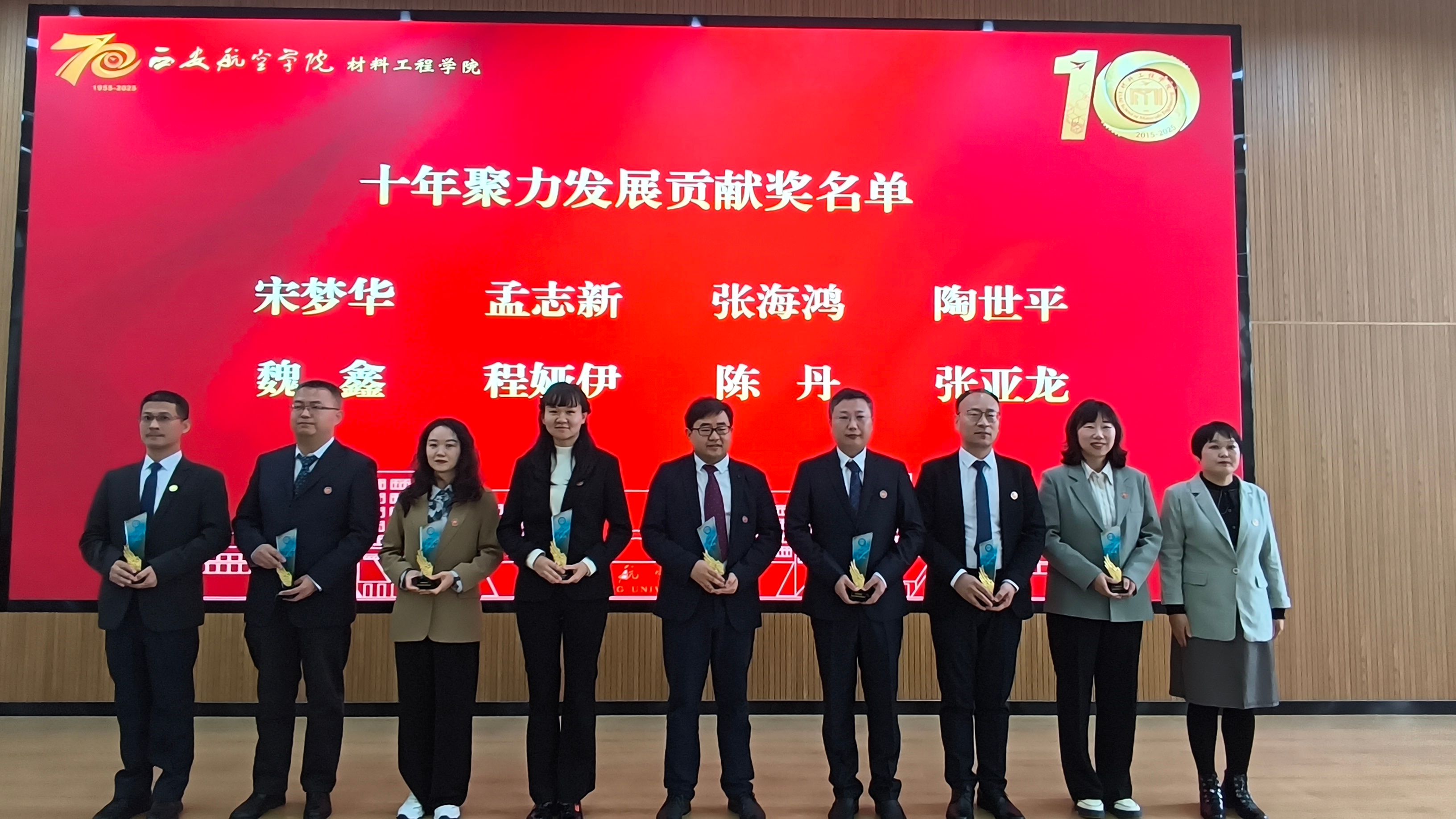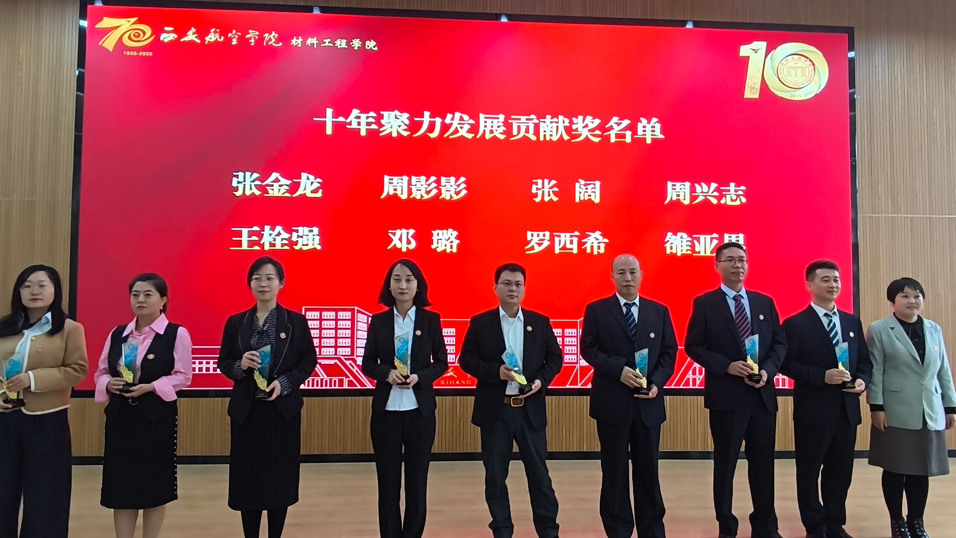 最后,许文丹发表讲话,对材料工程学院十年来的办学成就给予高度肯定,并对学院未来发展提出了三点期望:第一,聚焦立德树人根本任务,在人才培养质量上达到新高度;第二,聚焦学科建设核心任务,在争取硕士点上实现新突破;第三,聚焦服务国家发展大局,在产教融合上迈出新步伐。勉励全院师生以十年院庆为新的起点,继往开来,为学校高质量发展和航空强国建设做出更大贡献。