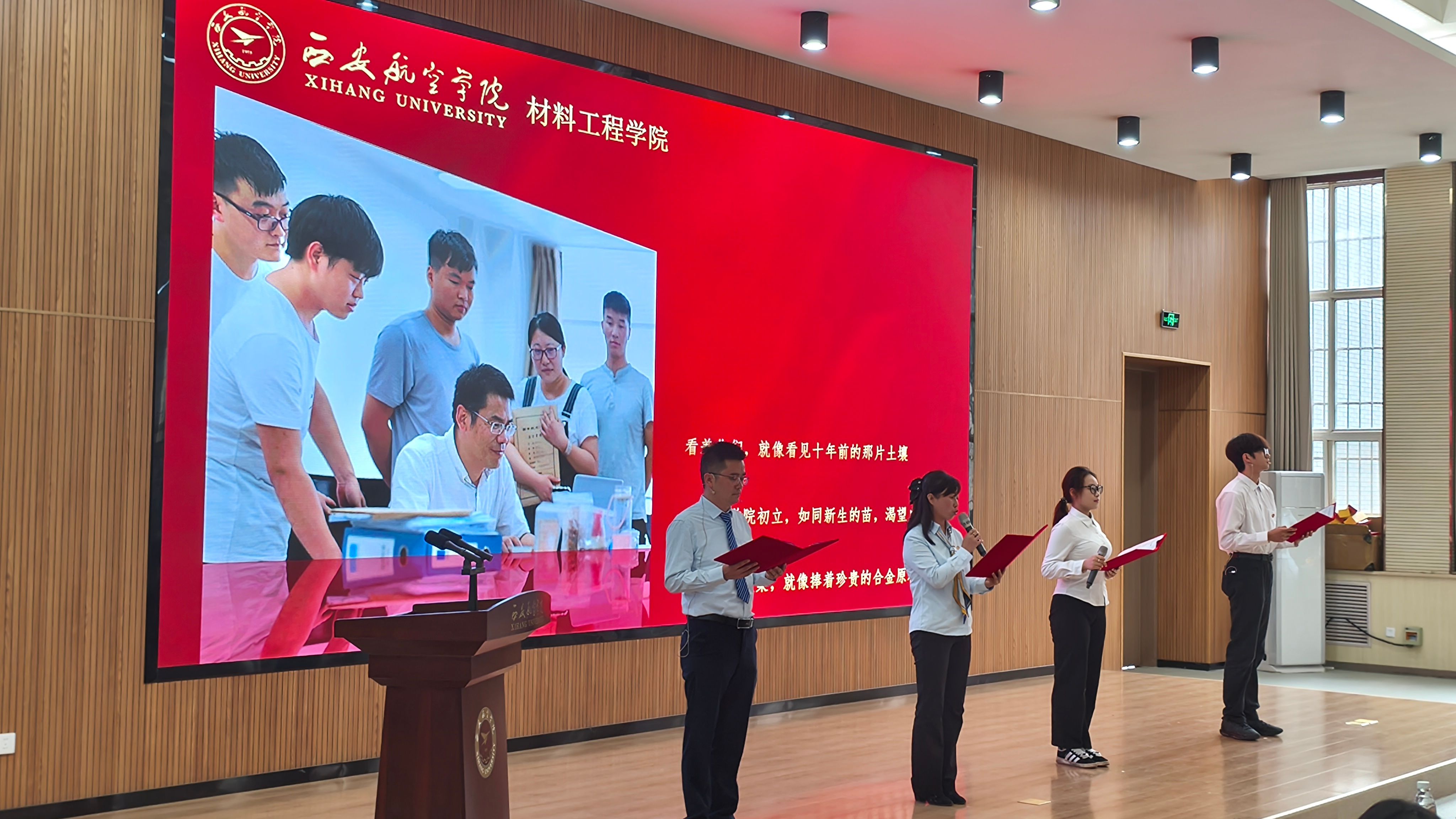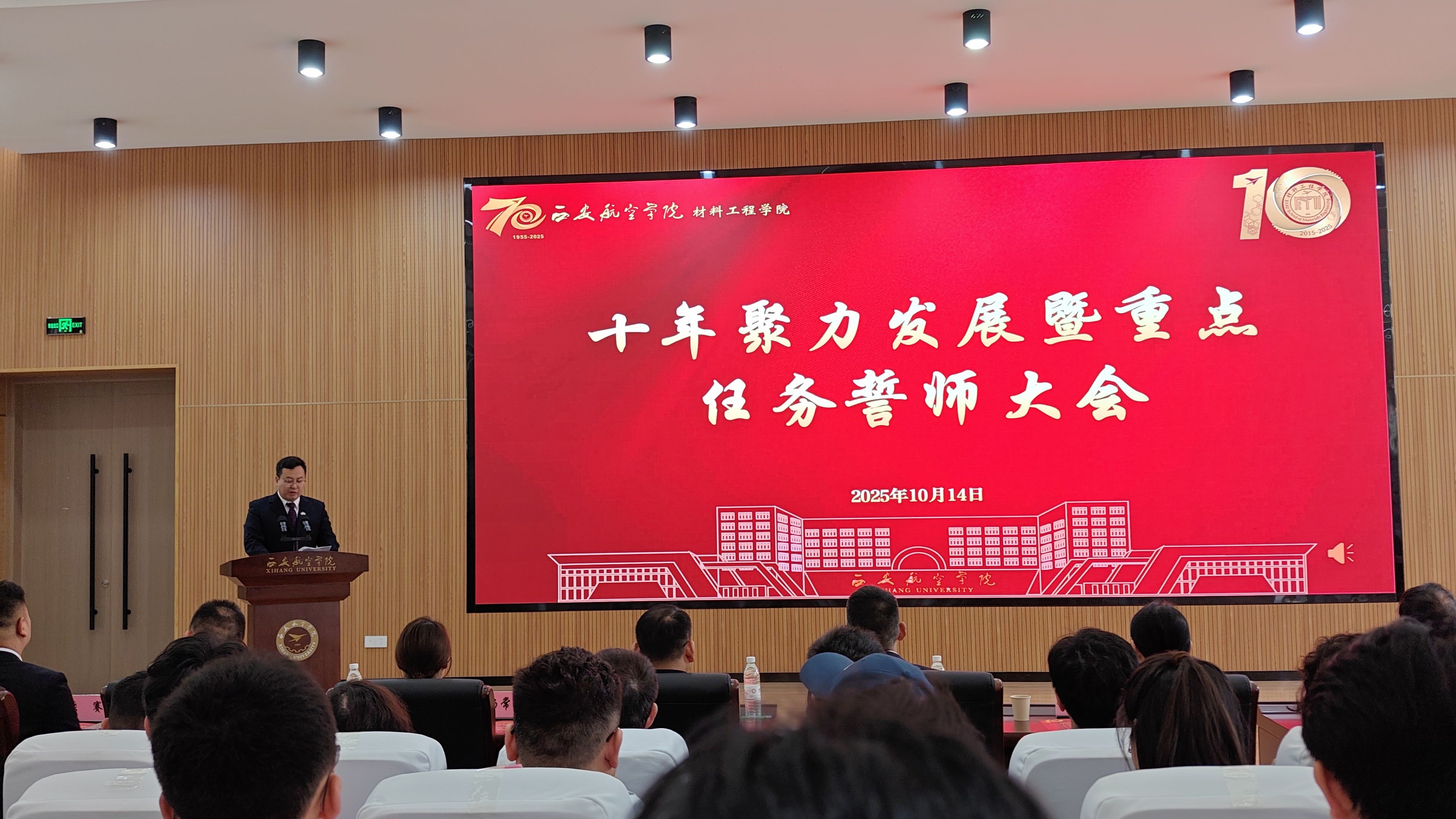 10月14日上午,在喜迎西安航空学院70周年华诞之际,材料工程学院在阎良校区阶梯一报告厅隆重举行“十年聚力发展暨重点任务誓师大会”。副校长许文丹、合作企业代表、校友代表、曾在学院工作过的领导与教师,以及学院师生代表共计200余人齐聚一堂,共庆学院十载华诞,共绘未来发展蓝图。会议由党总支书记严碧峰主持。
