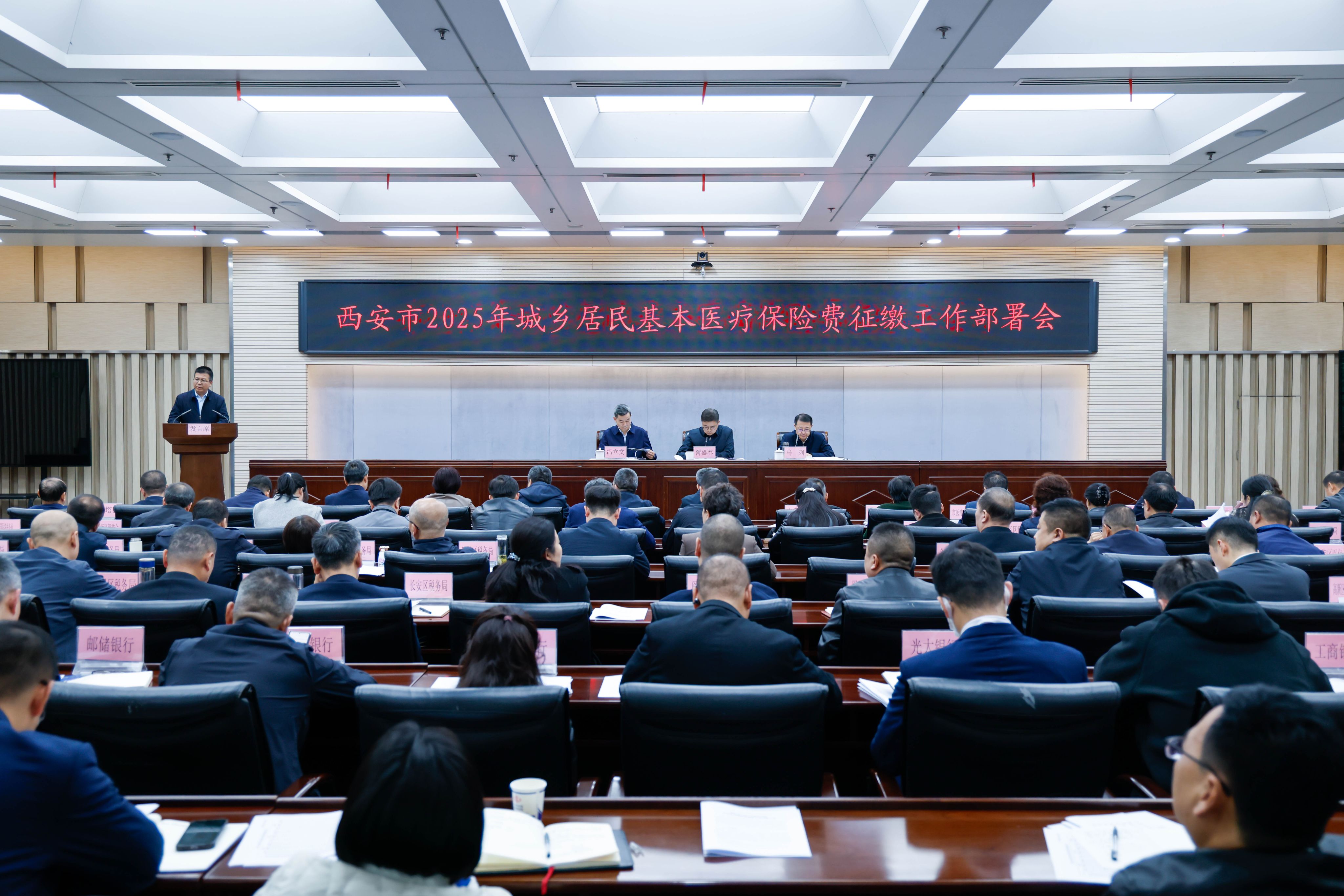 10月21日下午,西安市召开2025年城乡居民基本医疗保险费征缴工作部署会,我校党委副书记宁永录应邀参会。市政府领导、市医疗保障局、市税务局主要领导、各区县及市政府相关部门、驻市高校医保工作分管领导共150余人参加会议。