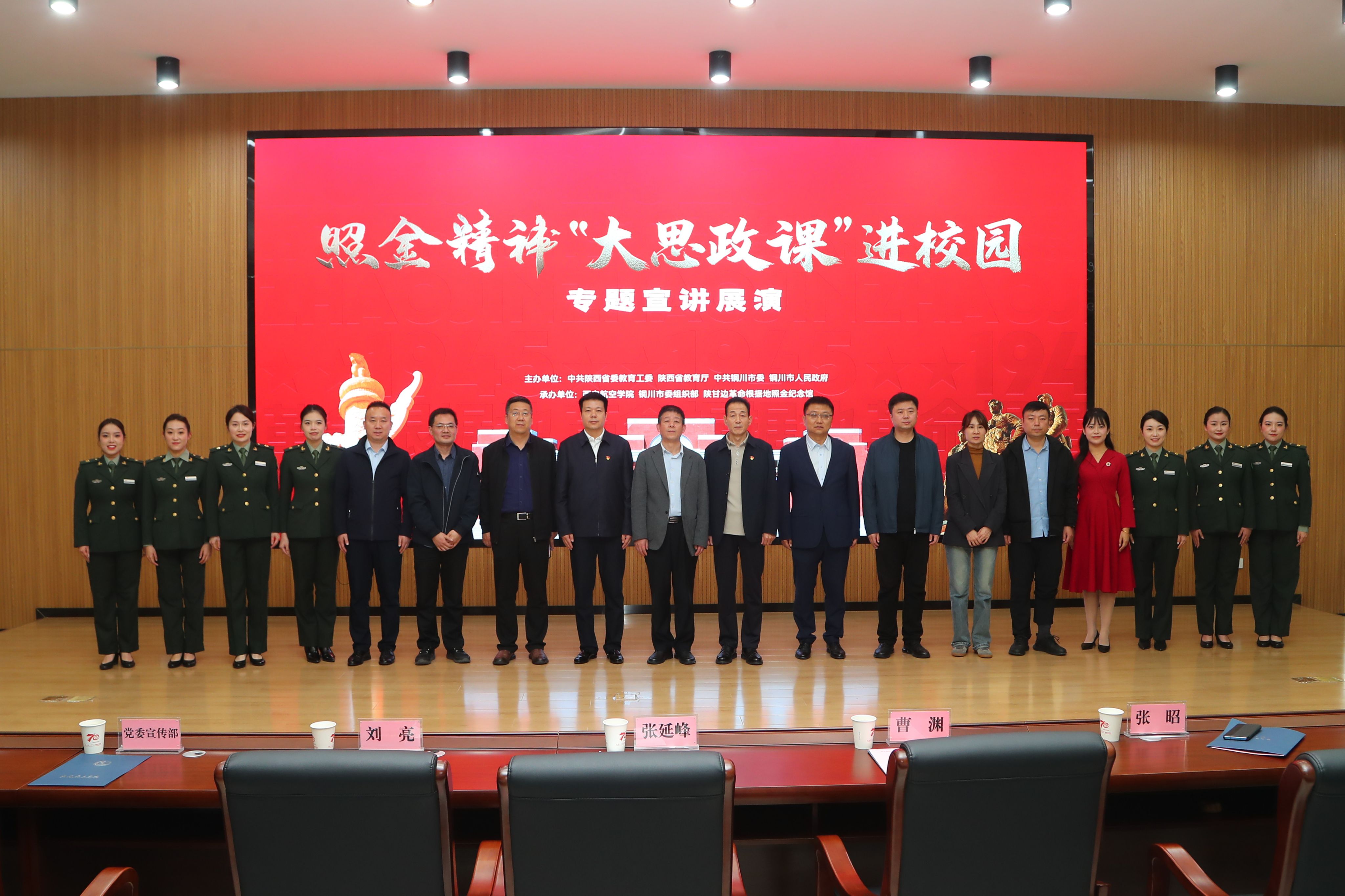 10月28日,由中共陕西省委教育工委、陕西省教育厅、中共铜川市委、铜川市人民政府主办,我校和铜川市委组织部、陕甘边革命根据地照金纪念馆共同承办的照金精神“大思政课”进校园专题宣讲展演在我校阎良校区报告厅举行。铜川市委组织部副部长、铜川市干教办(市委人才办)主任张延峰,陕甘边革命根据地照金纪念馆馆长刘亮,我校党委副书记、纪委书记、监察专员曹渊,党委副书记张昭,以及党委组织部、党委宣传部、党委统战部、学生工作部(处)、教务处、校团委、马克思主义学院等相关部门负责人和师生代表参加。