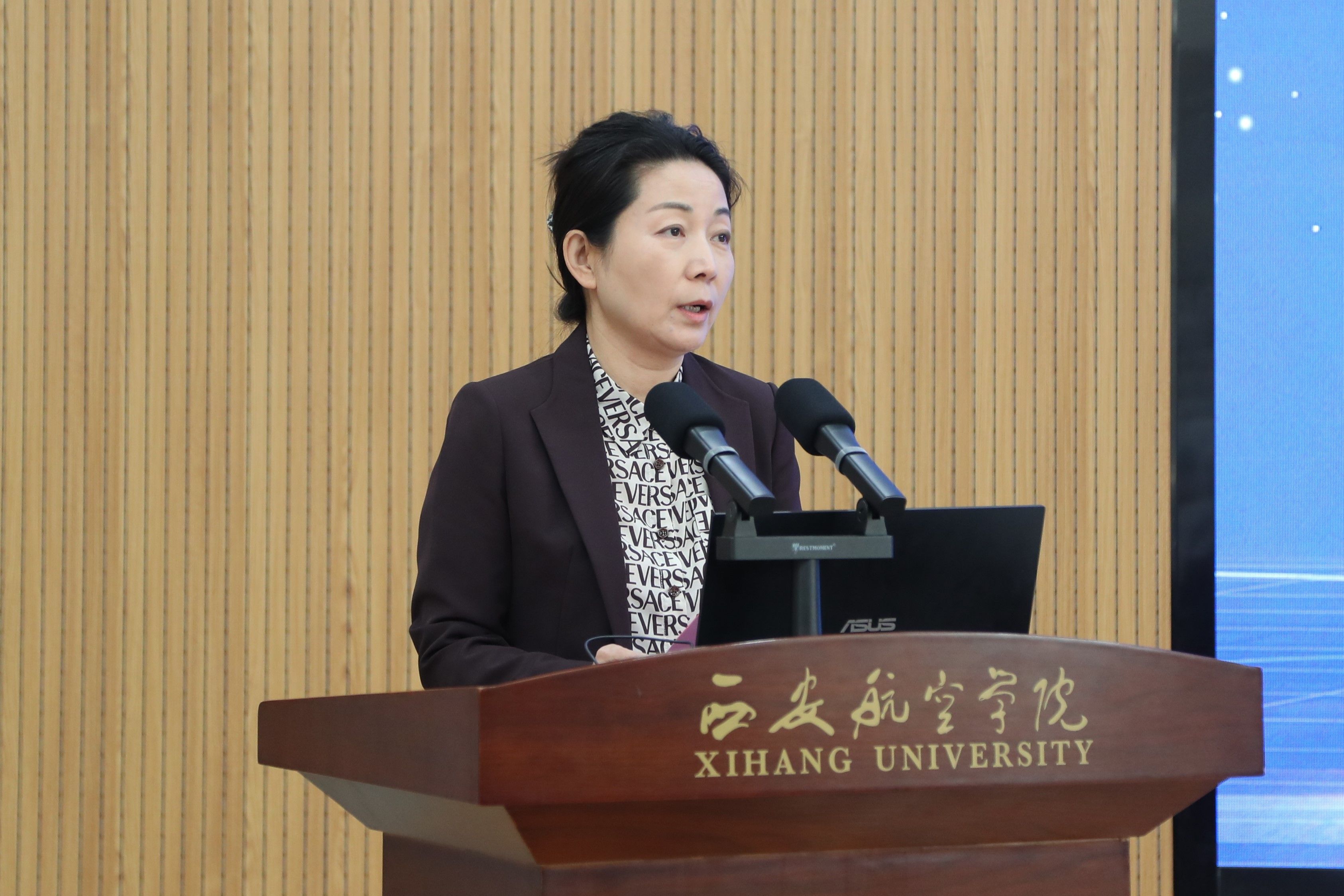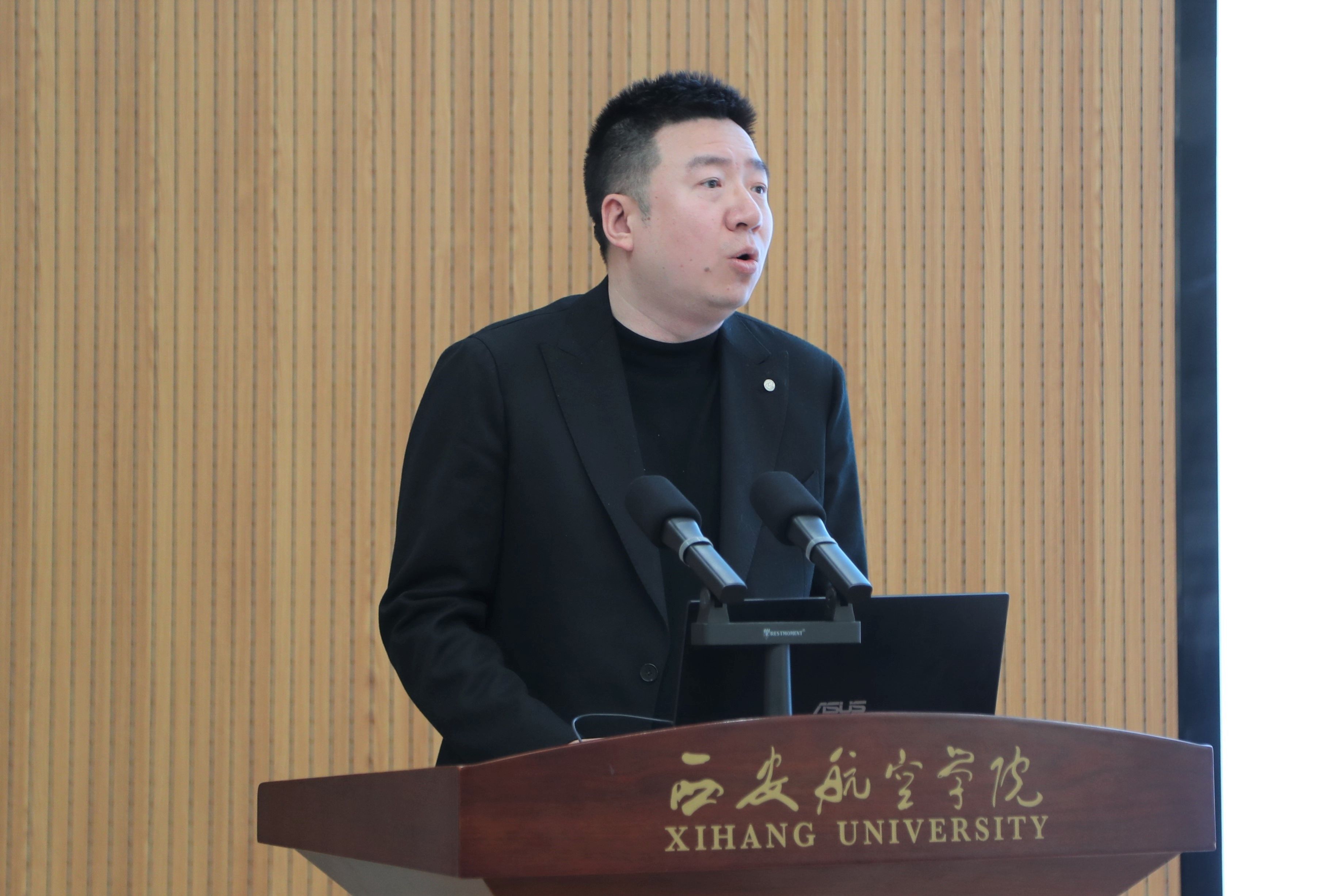夏楠代表区委区政府、航空基地党工委管委会致辞。她对大会召开表示热烈祝贺,认为学校主体搬迁至阎良以来,与航空基地在产教融合、协同创新等方面取得了丰硕成果,已成为区域创新体系中的重要力量。航空基地将一如既往地为学校与产业、企业的交流合作提供全方位保障支持,期待学校以科技协同创新和产学研协同育人持续助力区域高质量发展,共同打造校地融合、产教共兴的典范,构建“产学研用金”全链条合作新生态。