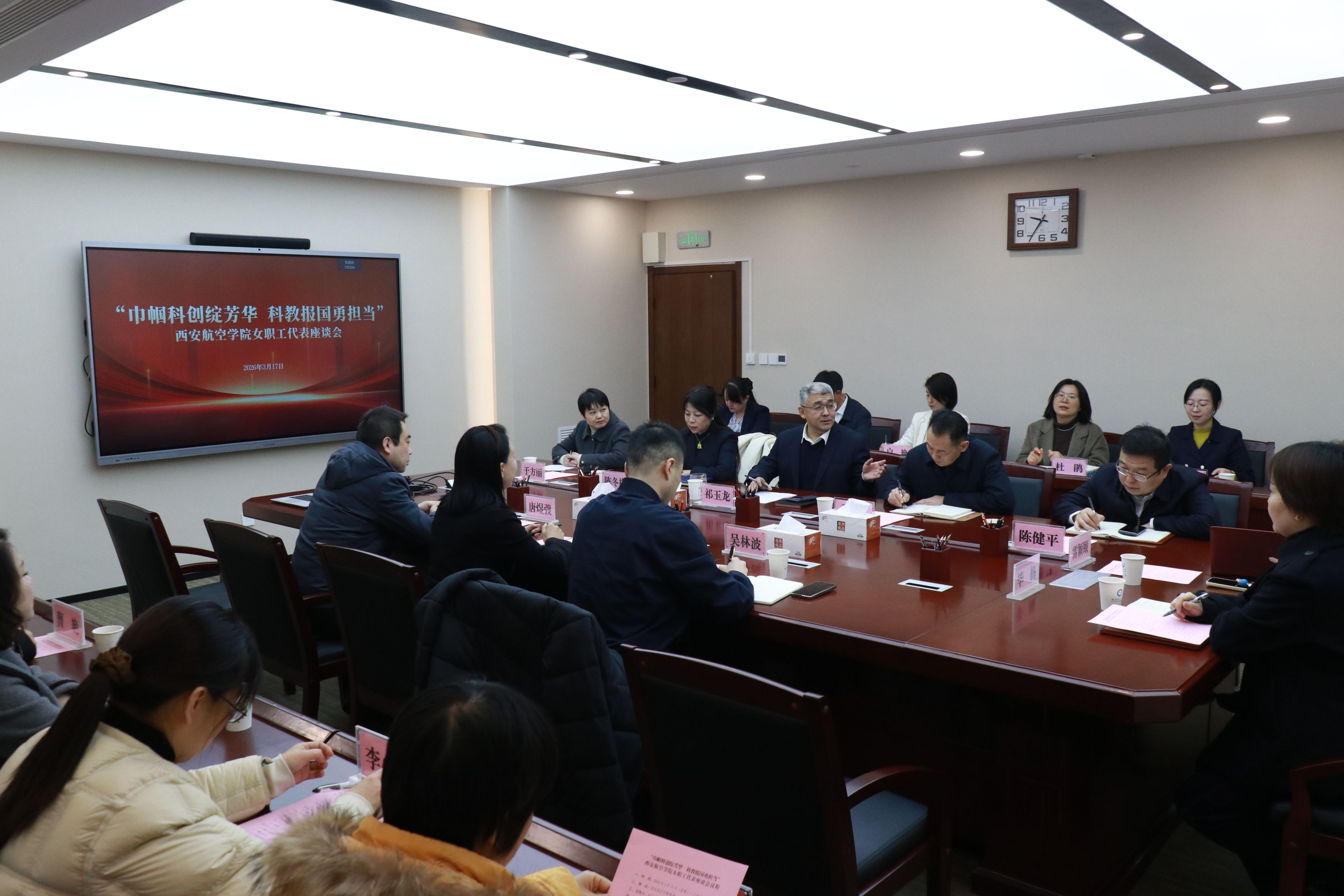 3月17日上午,陕西省总工会女职工委员会主任、省妇联兼职副主席叶璐一行三人来我校调研并慰问女教职工,校工会组织召开“巾帼科创绽芳华 科教报国勇担当”女教职工代表座谈会,推动落实学校科技创新年活动,学校党委书记祁玉龙、党委副书记张昭出席,学校省级科研创新团队女教职工代表,“黄大年”式教师团队女教职工代表,省级巾帼标兵代表,国家级、省级一流课程、创新大赛获奖者女教职工代表、后勤产业女教职工代表以及校工会和相关职能处室负责人参加座谈会,会议由张昭主持。