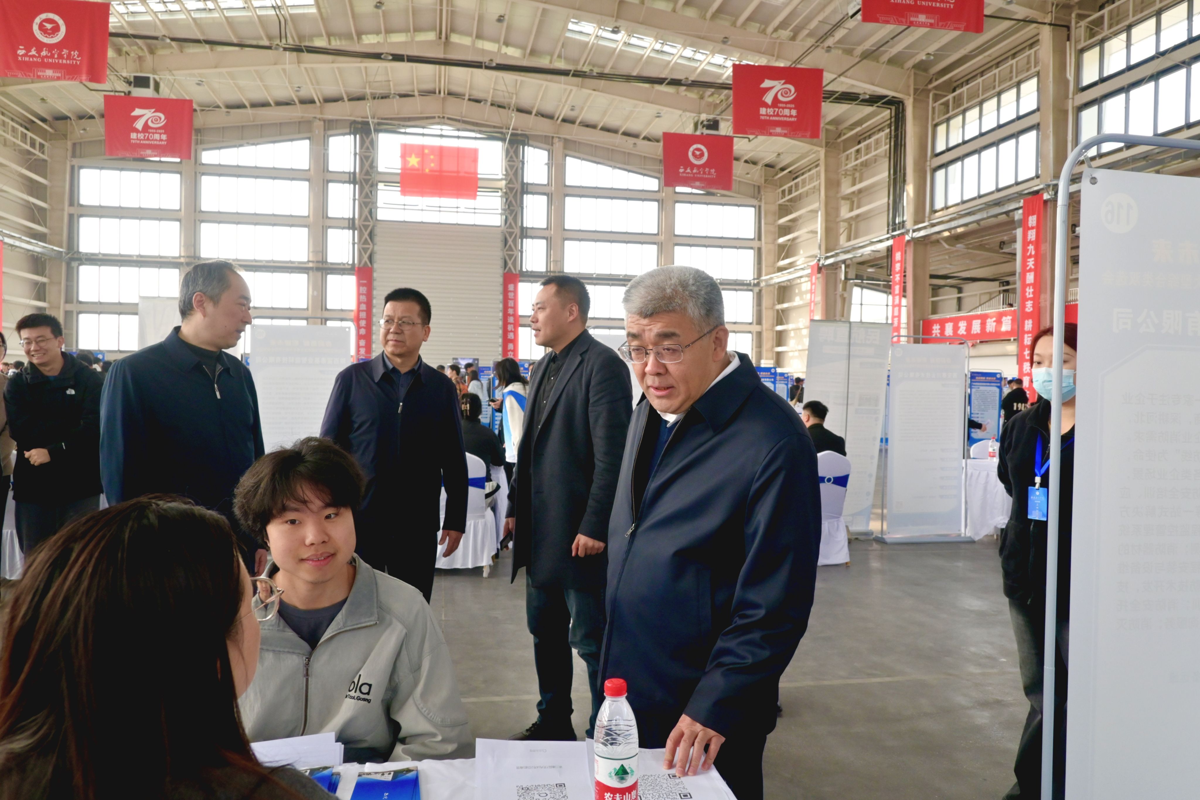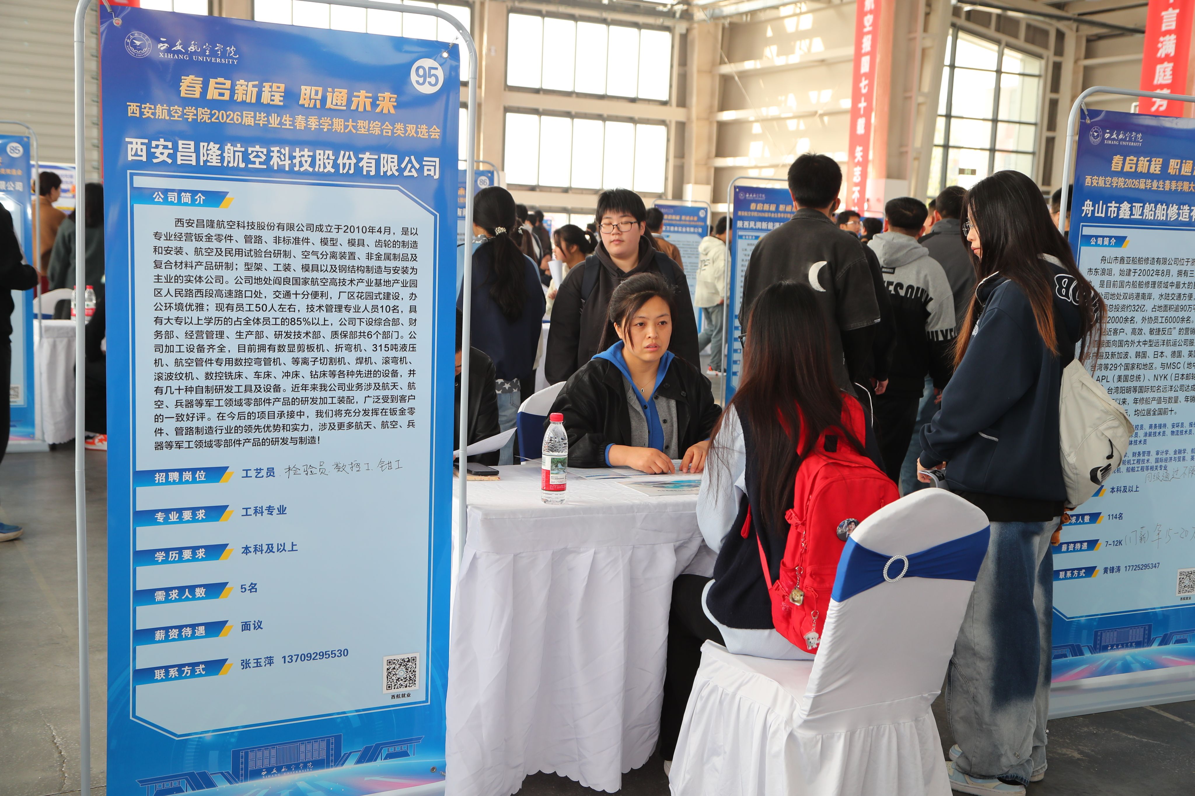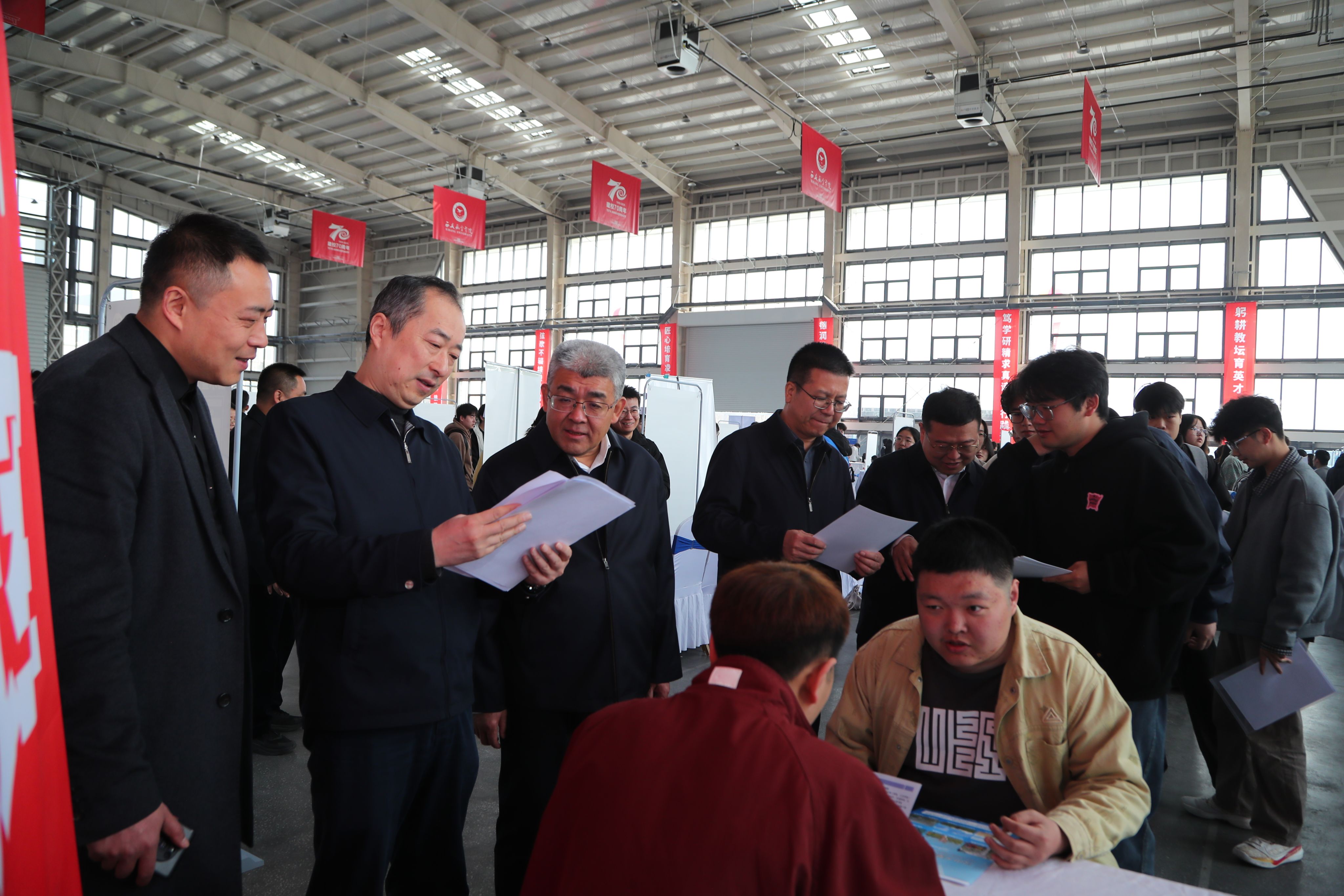 双选会紧扣航空特色,聚焦本省支柱产业人才需求,围绕航空制造、民航通航、低空经济、智能制造等学校优势领域,汇聚了一批与学生专业匹配度高的优质岗位。双选会现场气氛热烈,学子求职热情高涨,企业纳贤诚意十足,各项咨询、测试、面试工作有序进行。陕西省教育厅学生就业与留学服务中心主任相勇、校党委书记祁玉龙、党委副书记宁永录到现场交流指导,倾听企业对学校人才培养工作的意见建议,勉励广大毕业生树立正确的择业观,早日找到心仪岗位。